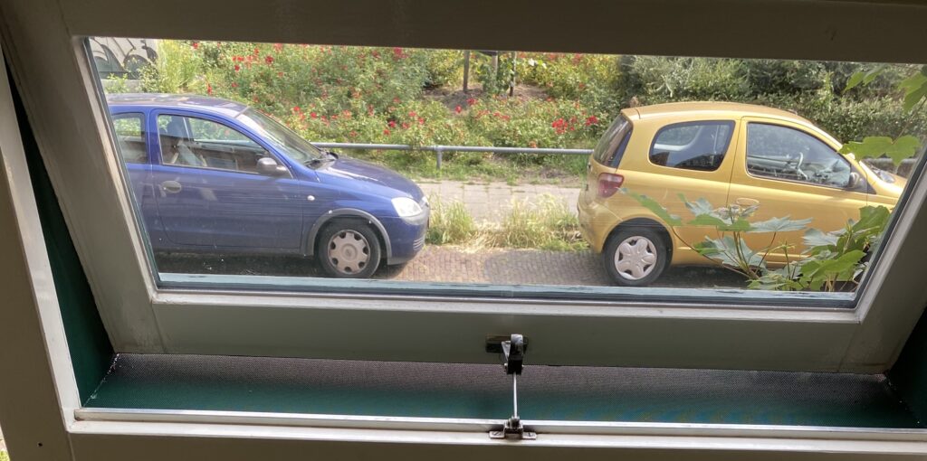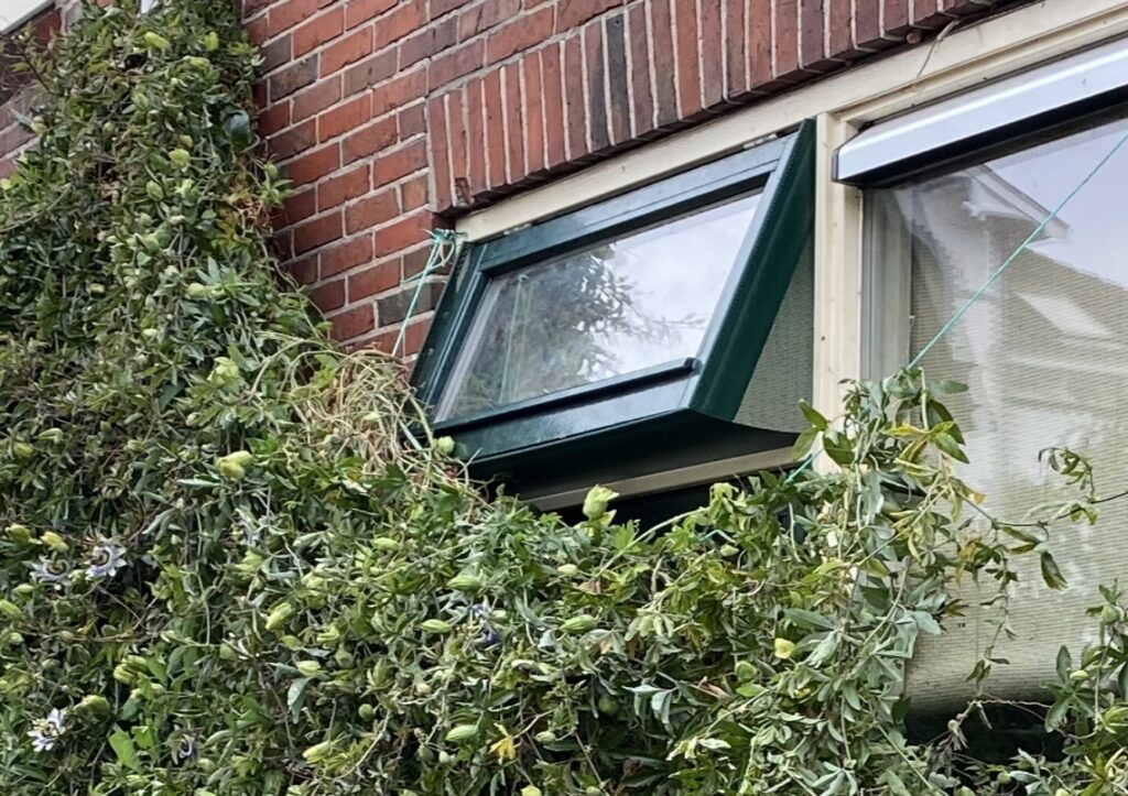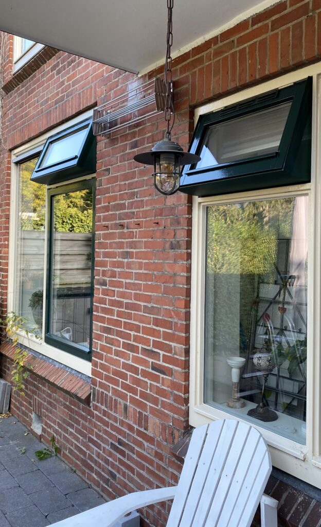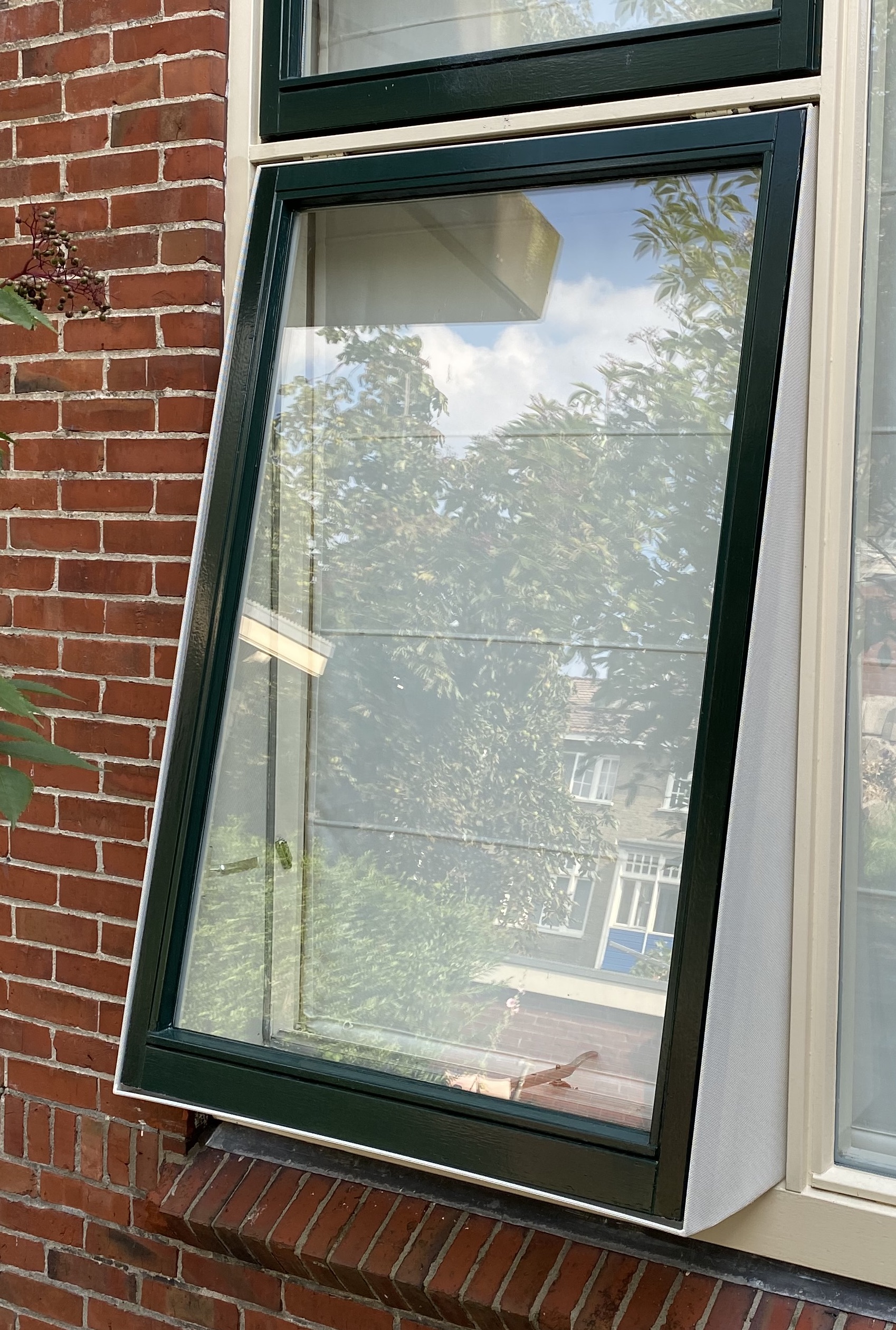 Een raam met twee vleugels Wanneer ze allebei open staan heeft men geen middenstijl. Handig bij verhuizen.